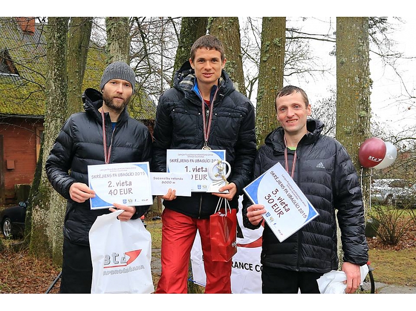 Pieaugušo konkurencē 8km distancē ar jaunu distances rekordu uzvaras laurus plūca Dmitrijs Serjogins /25:10,1/. Sudraba medaļu valsts svētkos šajā garajā distancē sev uzdāvināja jēkabpilietis Anatolijs Macuks. Sportists pašlaik darbojas mērķtiecīgā treniņrežīmā, jo pavisam drīz 4.decembrī, Katarā, Anatolijs Latviju pārstāvēs pasaules čempionātā 50km skrējienā.